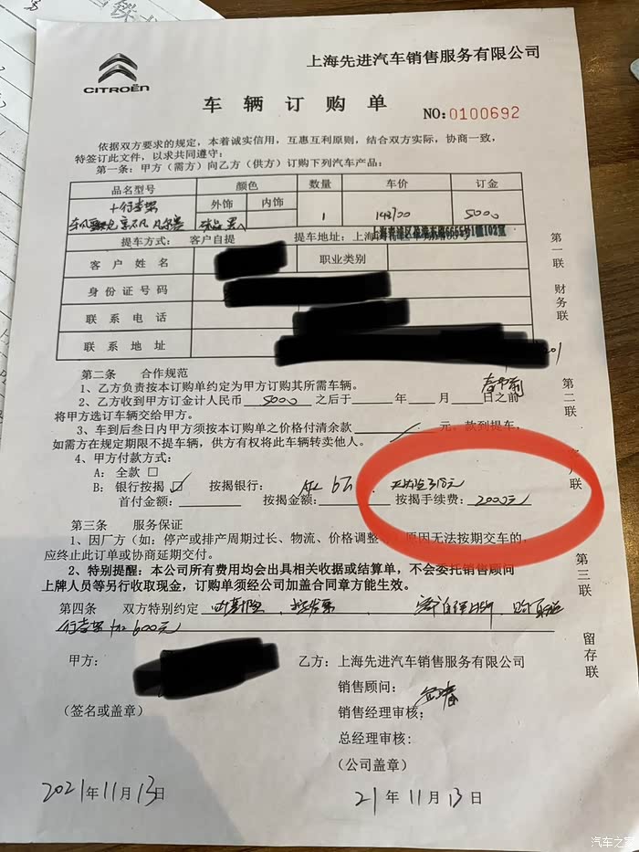 说到金融服务费,我以为大家都是统一收取2000元的,后面才知道,每家店是不一样的,而且服务费是4S变相收取的不合理费用,不属于厂家鼓励的。所以金融服务费是可以自己去谈的。有的人收1000,有的收3000,也有不收的。我被收了2000,所以买车还是要货比三家不吃亏呀。