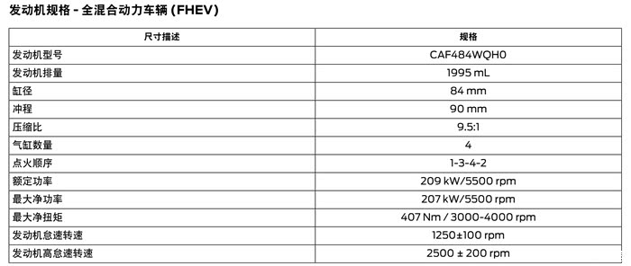 CAF484WQH0发动机,最大净功率207kW,混动系统综合功率227kW。