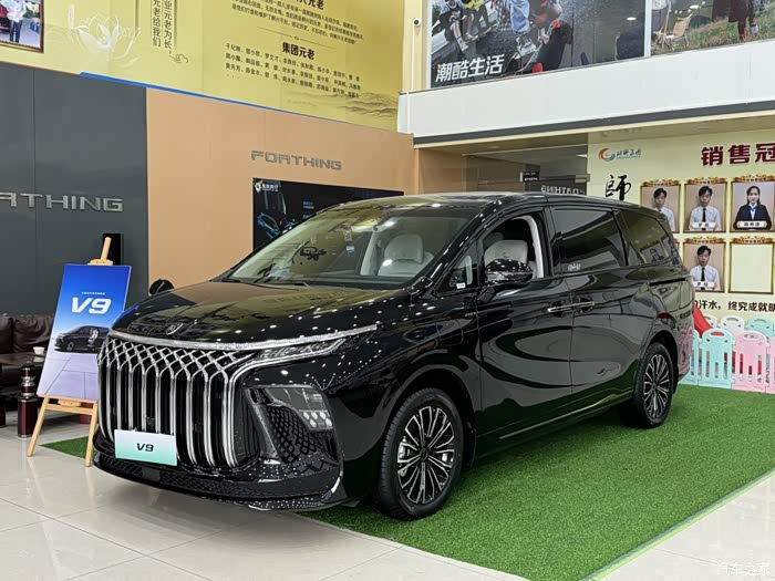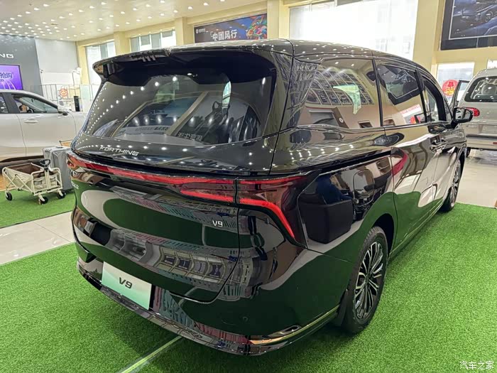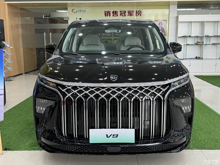 弄完之后,我俩终于得空可以好好看下进店的时候就注意到的这个大家伙,没错,就是星海V9。造型我是真喜欢,店员说这个前脸的中国结寓意着“十全十美”的祝福,还挺美好的。整个车身虽然尺寸很大,但是看着还是很修长精致,星芒造型的大轮毂也跟前脸造型很搭,由于是双侧侧滑门设计,所以门把手也顺势被设计成了轻舟的造型,还挺会玩儿。