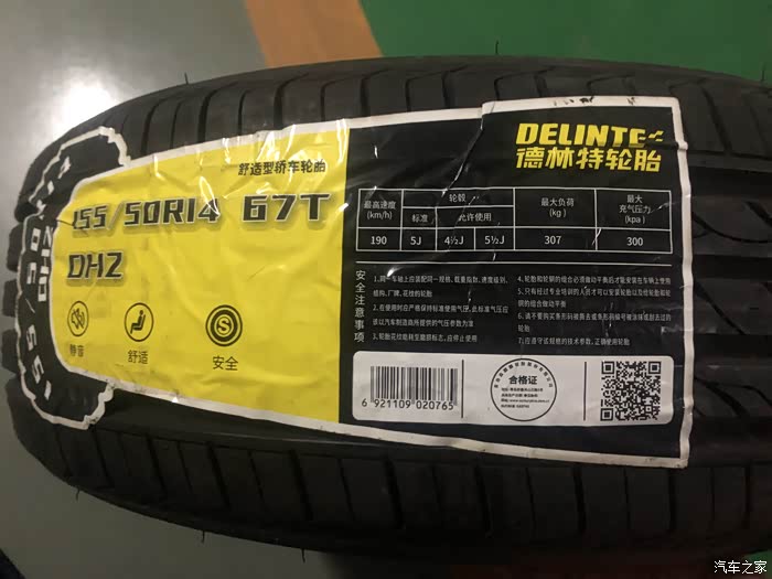 3. 轮毂的大小定了,轮胎的尺寸也就定了,能在允许的范围内(+-3%)的轮胎只有155 50R14这个型号的,有这个型号的牌子也不多,万达、德林特等,我最后用的德林特的