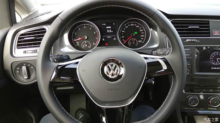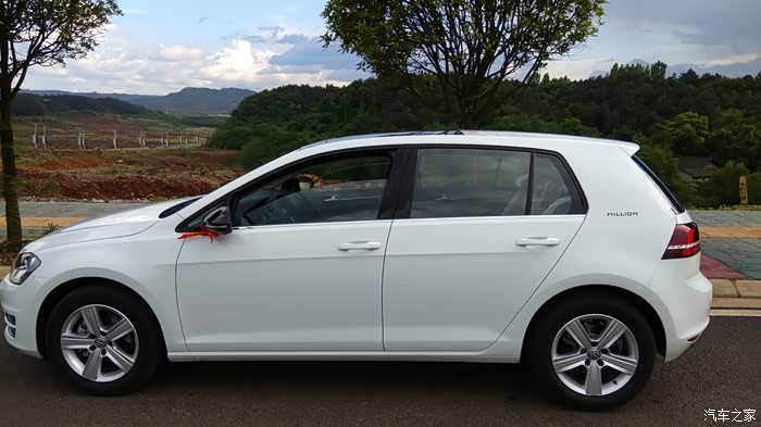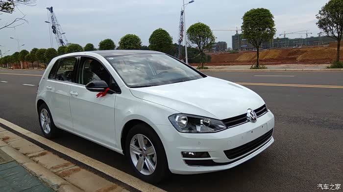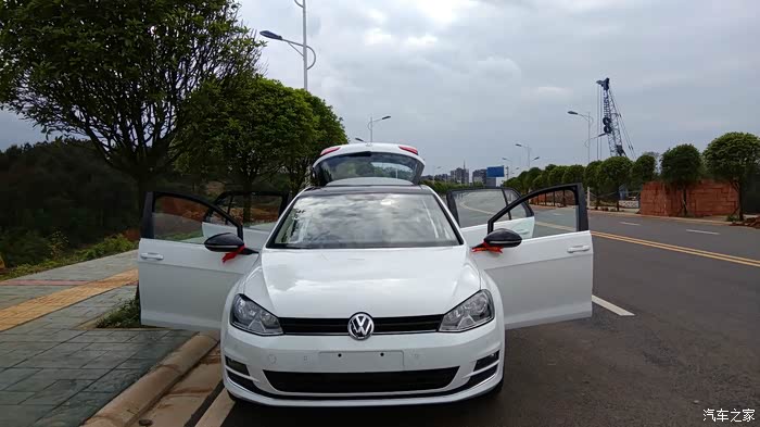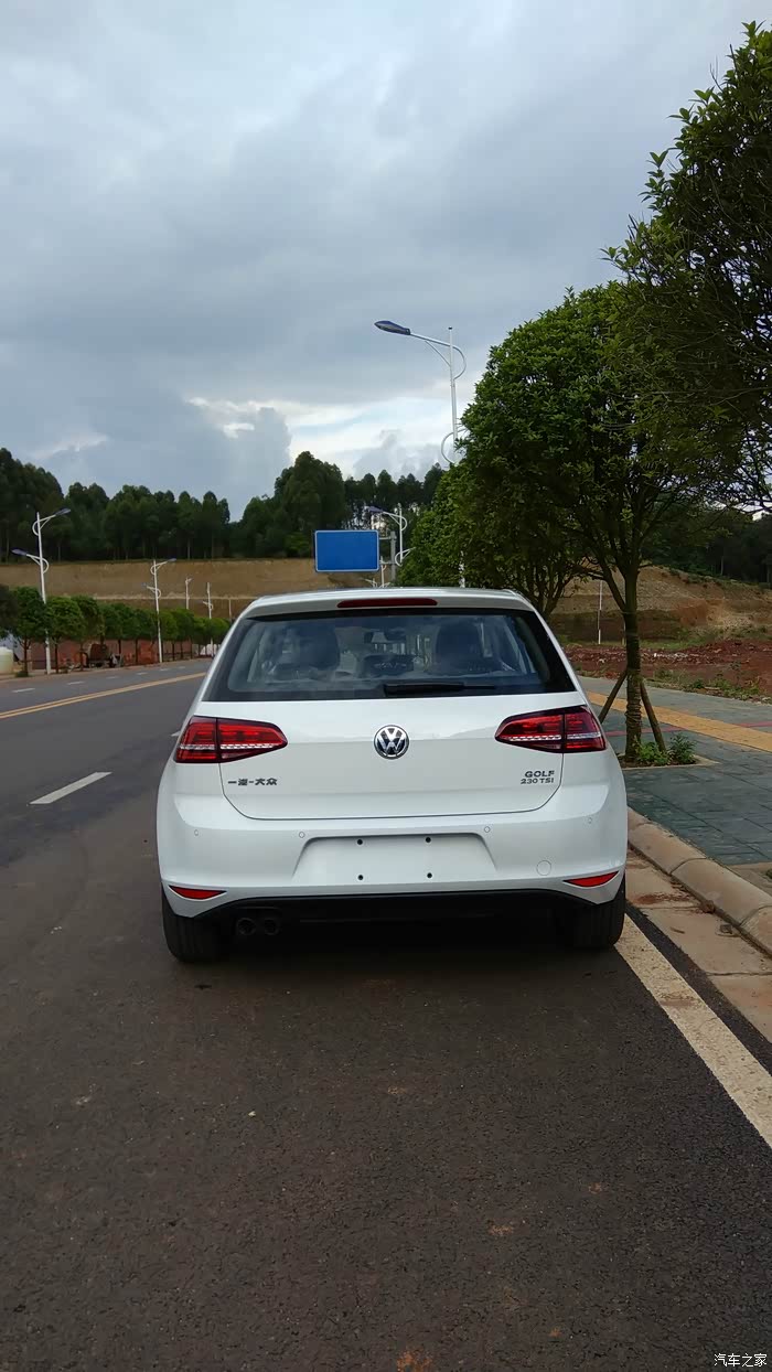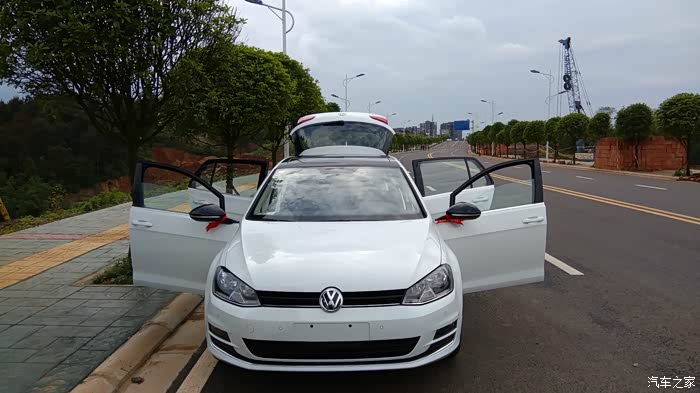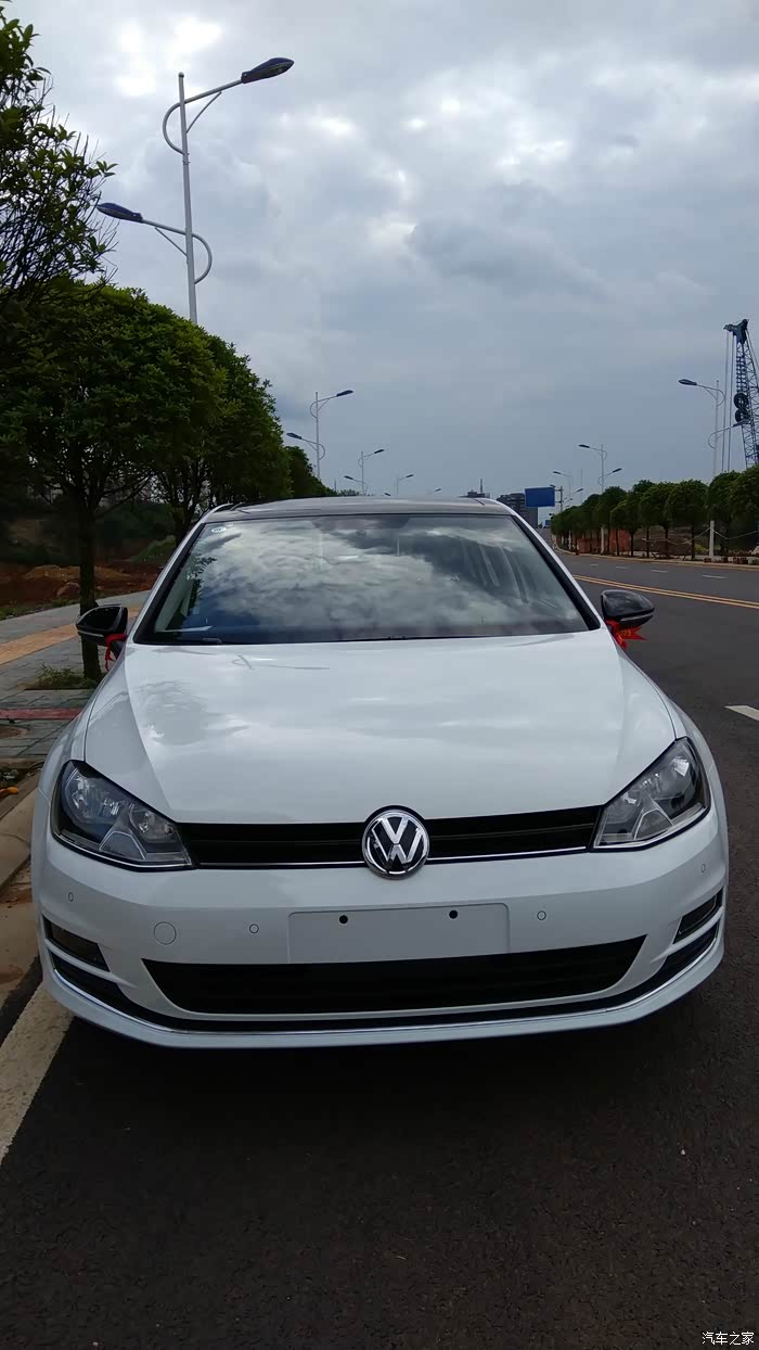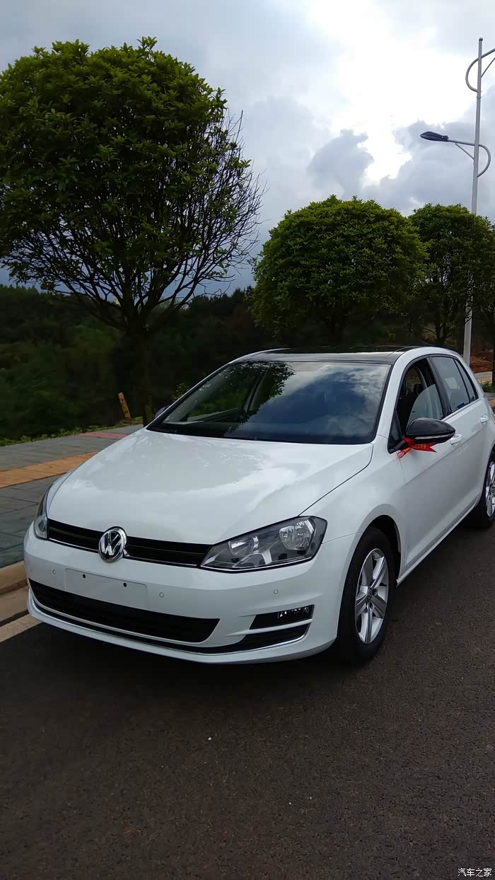 家里的旧车有些年代了,出于安全考虑,打算更换新车。过了年后换车就提上议程。由于家里还有其他车开,也没有很着急这个事情。3月份,一天老婆说单位同事准备给他女子买个POLO,她回来说干脆也去买个,这样一起还好谈价格。但她说想要Cross POLO,我上网一看,感觉也不便宜。就说还不如加点钱买高尔夫。后来达成一致。就买高尔夫。然后就是上论坛看报价、了解高尔夫7的使用情况。了解到高尔夫7简配了,尤其是后悬挂不是独立悬挂,还有就是大伙反应的DSG问题,总感觉有些不太踏实。但又怕1.6的动力肉,就在1.6和1.4T之间犹豫。期间去了一次4S店,由于去得晚,没有试驾,询问价格优惠5000,感觉纯属忽悠,看网上基本1.7万以上,也就没有怎么谈。这次是一家人去看的车,家里老人一看高尔夫,就觉得车不好看,甚至觉得旁边的嘉旅都比高尔夫好看(其实高尔夫嘉旅作为家用车不错,空间坐姿都比高尔夫舒服)。由于换的车主要给家里父母开的,他们不喜欢,然后就打算看下SUV 或者三厢车,期间中意的是迈腾,尤其是凯撒金真的漂亮,领先型性价比高。SUV看了一下,看见新款科雷傲真心漂亮,尤其是蓝色的。3年前,家里购买途观的时候就差点提科雷傲,当时由于考虑是进口的,4S店少,维修配件贵,后面才提的途观。迈腾和科雷傲二者比较,父母更加倾向于科雷傲。于是上科雷傲论坛,了解信息和价格优惠,最后去店里谈了价格,优惠1.3万,送膜送儿童安全座椅,由于才上市半年不到,目前就这个力度,优惠幅度不大。网上朋友都说5.1过后应该增加优惠。看到最后我和媳妇还是中意高尔夫,车小在城里开方便也经济。于是回来后和父母商量,让他们开途观,我们开高尔夫。上周单位开运动会,下午放假便独自一人去一汽大众4S谈价格。由于我们是地级市,比成都肯定要贵些,达到心理价位后,就签了合同,下周2提车。星期二早上,4S店帮忙一起给旧车过户,然后再提新车,忙了一天。傍晚提车后开回家,城市柏油路感觉不出来非独立悬挂和途观独立悬挂的区别。提速还是很快的。方向盘轻。总体感觉两个字:好开。路上停车照了些照片,附上。
