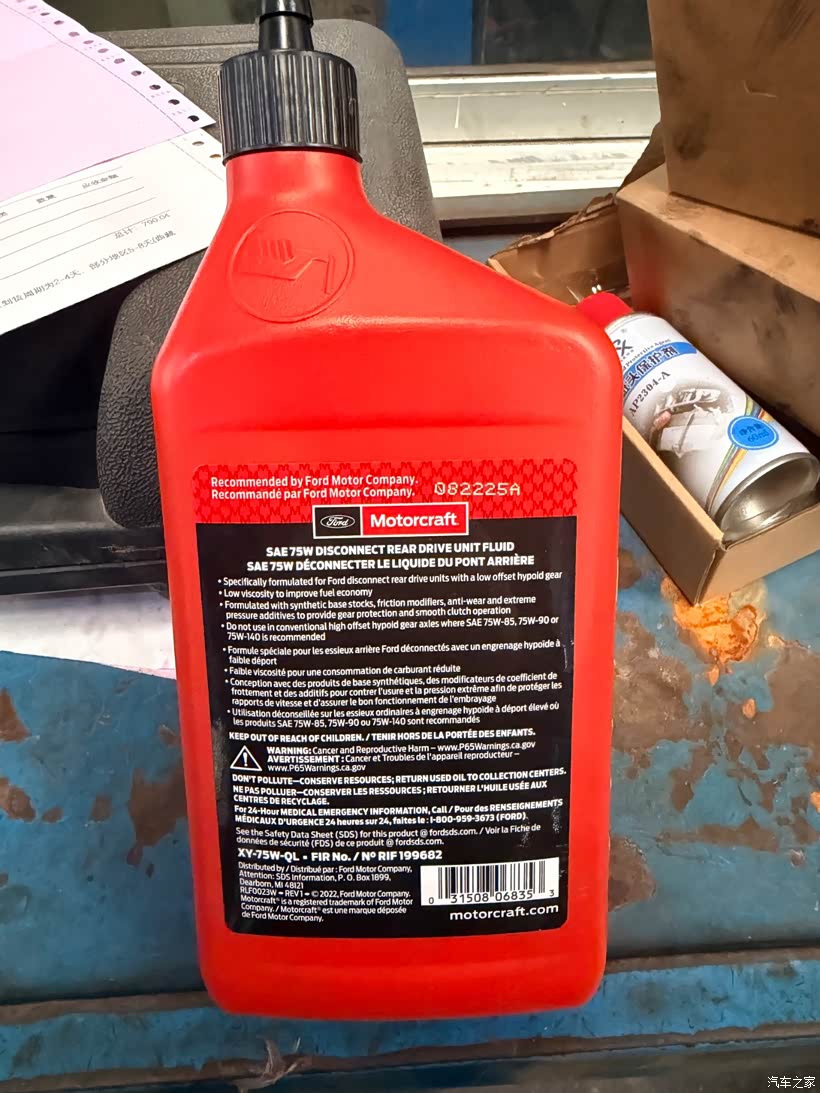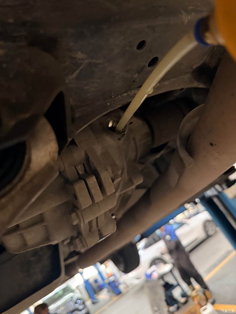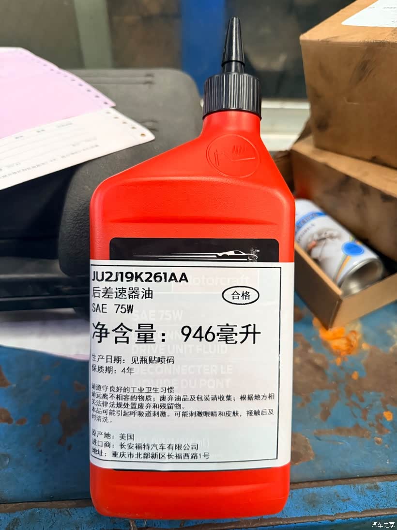 接下来就是更换后差速器油了,放出来的油感觉还是非常清澈的,而且不多,一下就放完了。接着就是加这款进口的后差速器油了,这一瓶用了差不多4分之3就加满了,根本加不完。采用一个巨大的针管推进去,推到从加注口漏液就代表加注满了足够了。