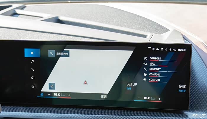这套双联屏与iDrive8车机系统融合的非常完美,不仅操作起来流畅丝滑,UI设计和各个界面颜色的搭配也及其合理,主页的操作逻辑简单易懂,不论是本身自带的应用还是连接Carplay,都是相当好用,并且仪表盘界面支持高度自定义,我这次主要用了Focus 模式,是以专注驾驶为导向,只显示行驶过程中所需的基本信息,大家有机会也可以体验下其他模式下的显示效果。