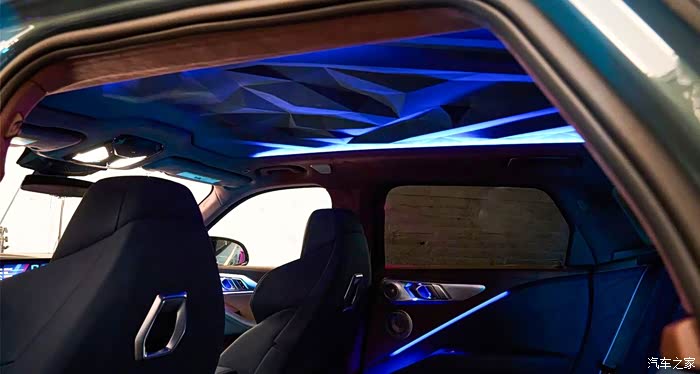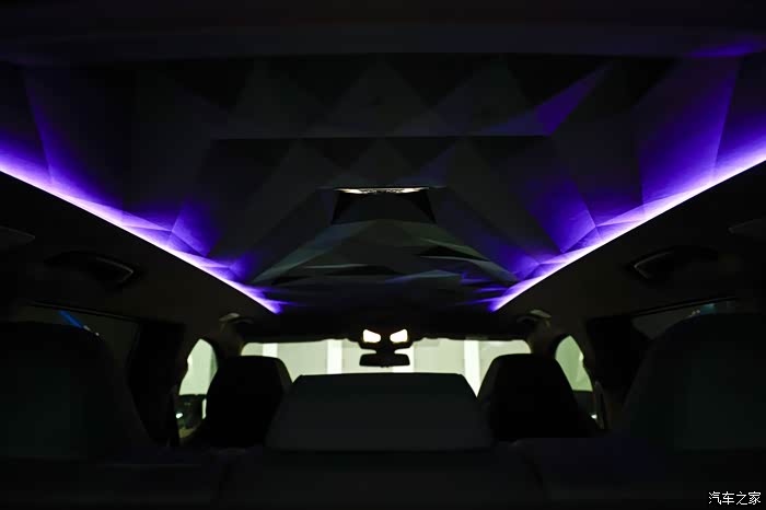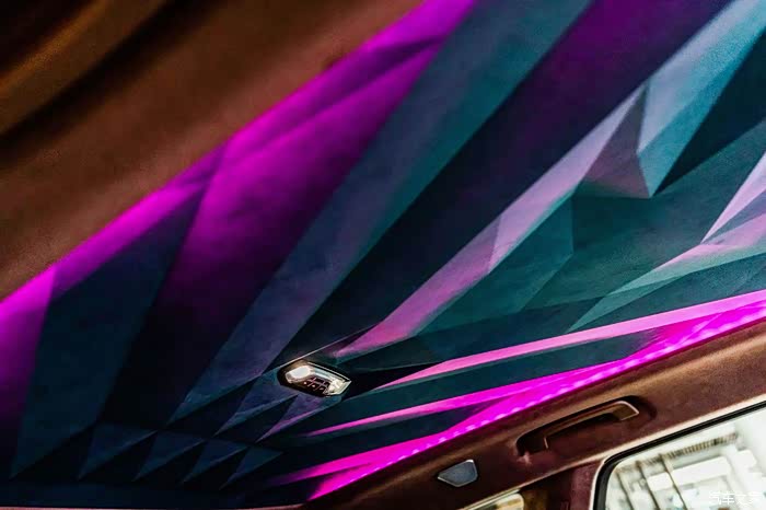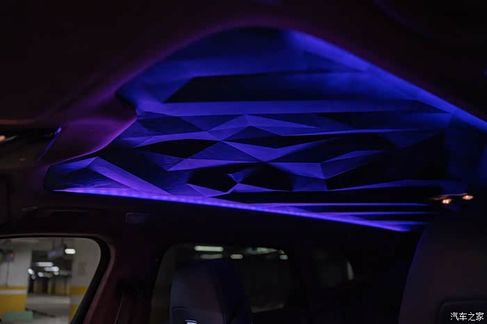 最令我期待的浮雕穹顶,Alcantara材质搭配100颗LED氛围灯同时营造高级感,可以呈现出十多种不同的颜色,在车内体验到了前所未有的尊崇感,让人印象深刻。