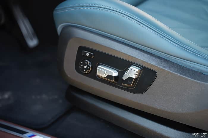 座椅材质采用的是个性化定制Merino真皮,深海蓝色,坐上去柔度合适,包裹性也不错。座椅还配备电子调节,支持多方向调节,随心所欲,十分便捷。