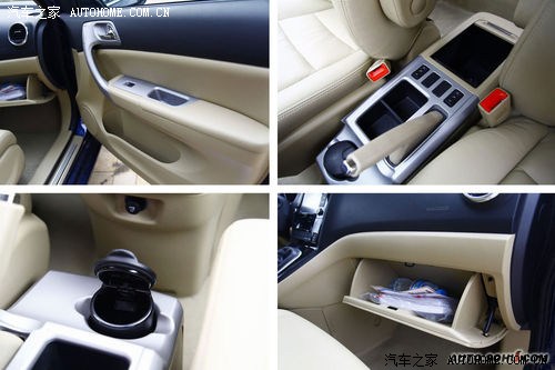 后排中央扶手带有卡紧设计,手套箱及后备箱的储物空间成为了极大的对比,后备箱好像衣柜的设计,分为上中下三格,其中的两个隔板都可以收起,而手套箱没有一米九车宽应有的空间,深度和宽度都不是很大。