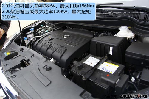 本次可供试驾的车型分为两款,2.0L汽油发动机和2.0T涡轮增压柴油发动机。非常遗憾的是,这款柴油动力无缘北京的道路了。2.0L汽油机最大功率98kW,最大扭矩186Nm。配备了5速手动变速箱,这个组合在H3和H5上也都一样。多款自主品牌的车型也都搭载了这款三菱4G63S4M发动机,不过在装配H6的时候做了些许的调教和改良。