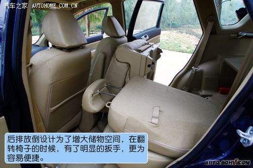 和多数车一样的后排放倒设计,为了增大储物空间,在翻转椅子的时候,有了明显的扳手,更为其容易。