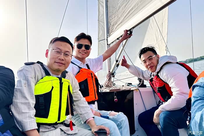 初到营地的新鲜感基本消失以后,大家玩了一些水上项目,在教练的带领下一起体验了帆船的水上巡航,乘风破浪,穿梭游弋在银波粼粼的湖面上。几位车友各司其职,担负着辅助驾驶的任务,大家快乐的围坐在船舱内,丝毫不在意飞溅的水花打湿衣衫,只留下一片欢声笑语飘荡在轻柔拂面的春风里……