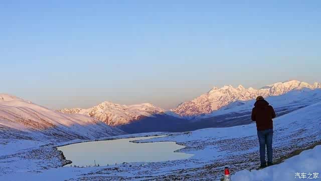 此刻正当日落红海、夕照金山,一车三人便在海子旁的公路边,融雪煮茶,吃些干粮,趁机也缓缓气儿。而我这时也在想:是我们做错了什么?还是我们想多了什么?面对日落风冷,面对神山,看酡红天际映在水面,却渐息渐暗,我发觉,路正确,山正确,冰雪也正确,而我自己出来就是个错误。