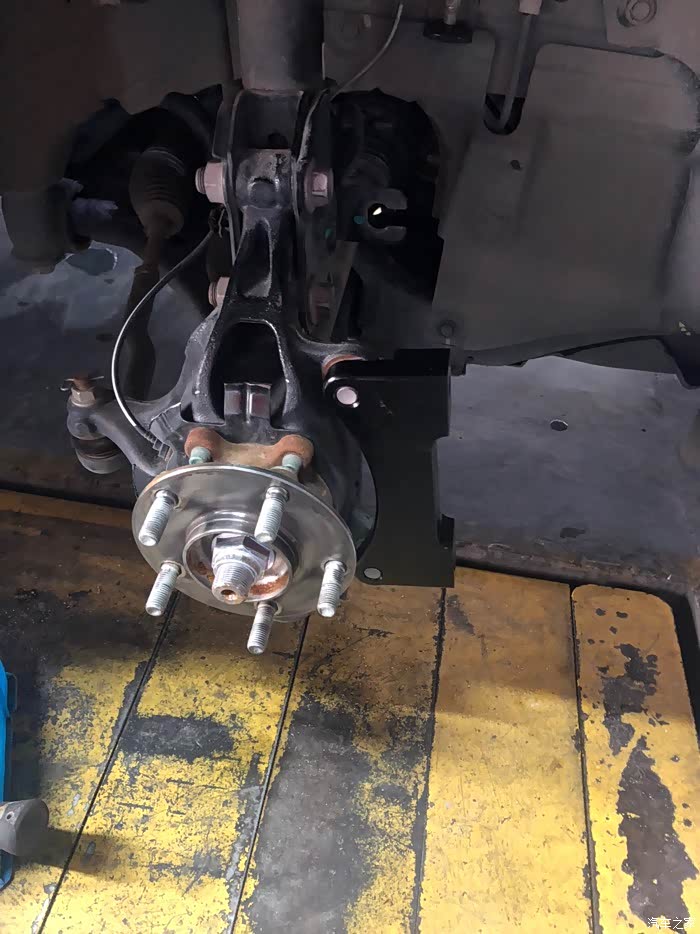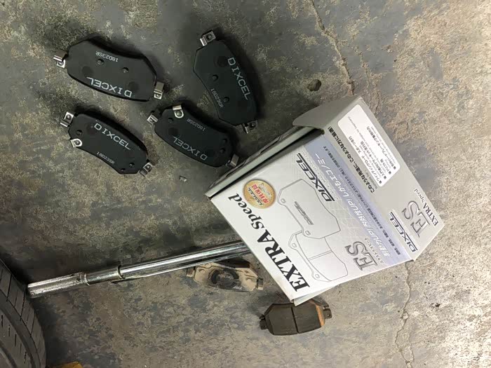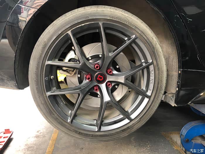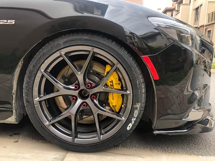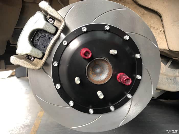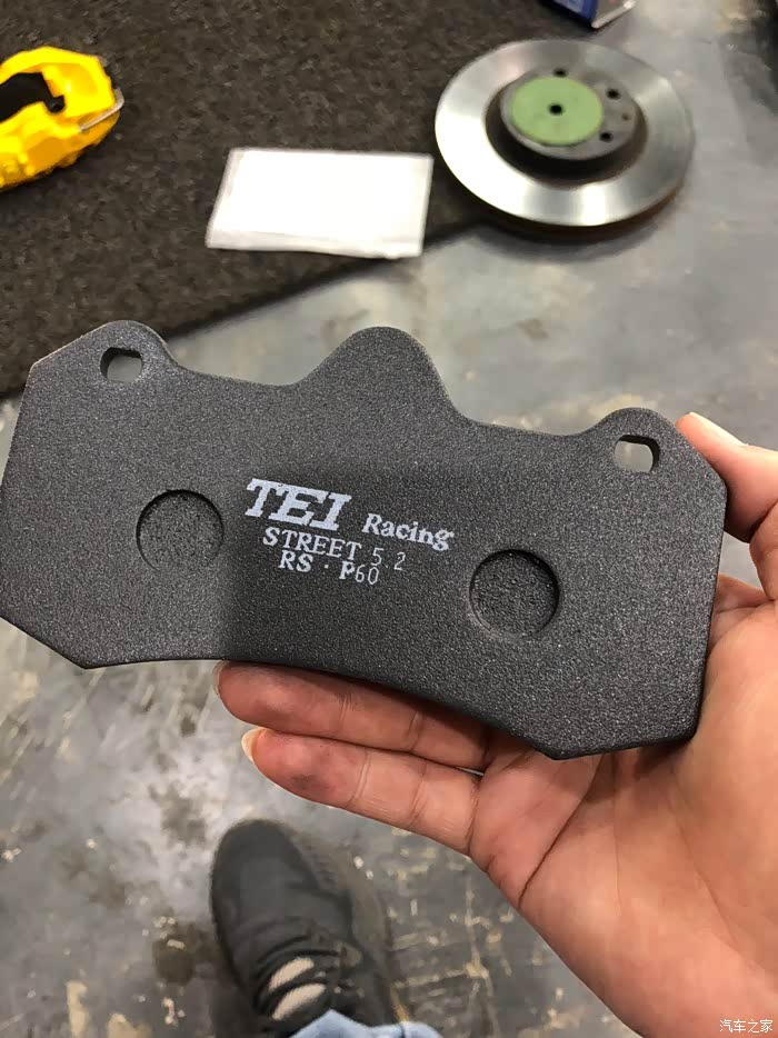 这效果经历了3,4个月吧,由于一次高速差点追尾,这让我想到了升级刹车!原厂刹车真的很辣鸡,前段脚感很软。在没改刹车套装之前,我有过很多种想法,一是更换油管,换刹车油,原厂是橡胶油管,跟换钢的不易变形,只是能提升初段的脚感,对刹车性能没帮助。二是更换更高摩擦系数的刹车皮,纵观所有,我选择了应该EBC的黄皮,这是竞技皮,摩擦系数5.0,效果非常不错。三是用原厂轮毂更换刹车套装,后面想到用原厂轮毂要加法兰盘才可以避开刹车,最后还是放弃了这样想法,最终选择了更换轮毂!
