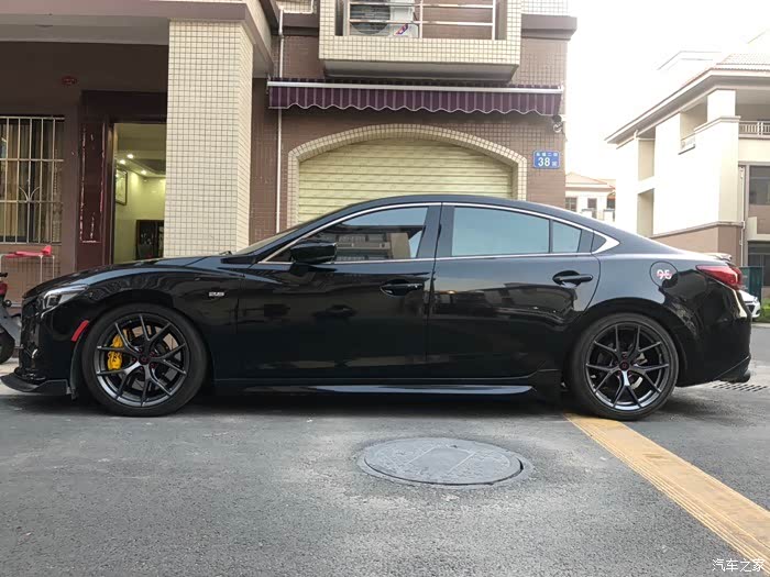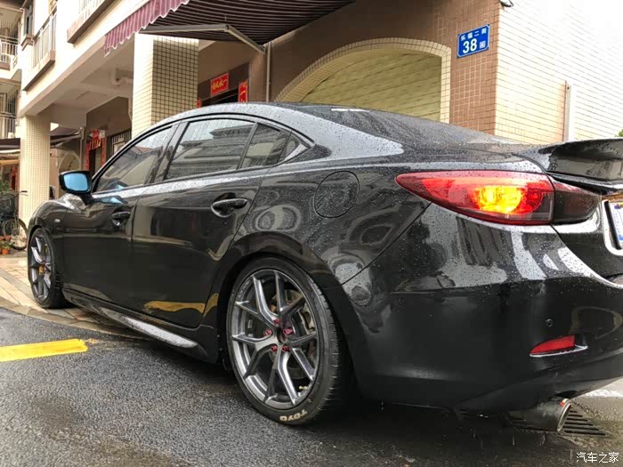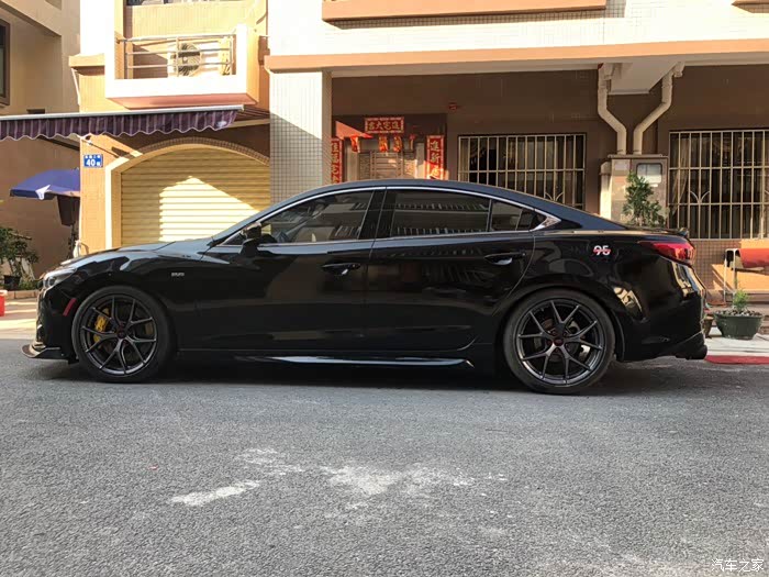 到这里基本上都结束了,又开了个把月,问题来,前面是6活塞,每次刹车踩的深一点,整个人都会向前扯,这主要是前面的刹车力度太强了,一台车的制动力分配,一般都是前面70%,后面30%,估计我前轮牵制了太多的制动力了,唯一解决方法就是后轮增加制动力。阿特兹原厂是电子手刹,受制于电子手刹的影响,后轮不可以单独改4活塞的卡钳,改起来也可以,就把电子手刹换了,这样会花费很多资金,唯一可以做的就是加大刹车盘,更换刹车片。