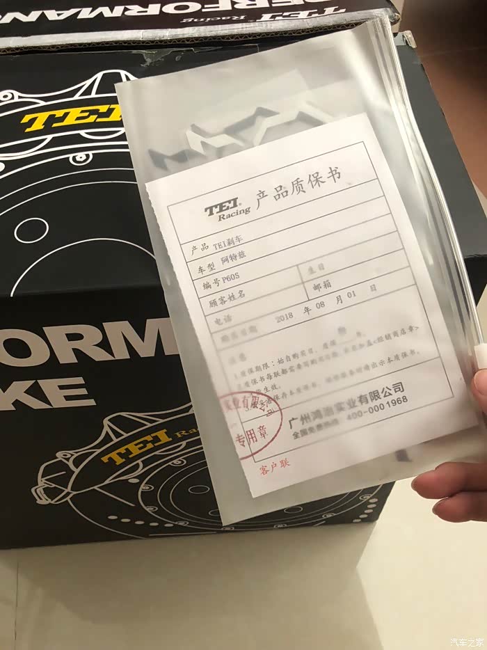 对于刹车品牌有很多种,我相信大家认识的AP 布雷博这些吧,甚至更高级的品牌,这些高级品牌价格太贵了,其实国内的一些牌子做的也很不错的,最终选择了这套德国的TEI刹车品牌。还是看自己钱包吧这个