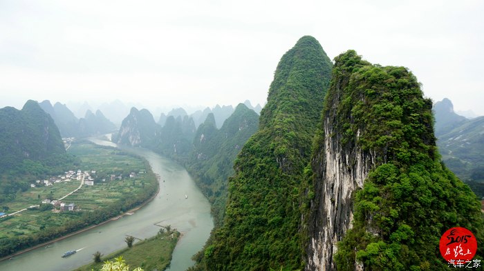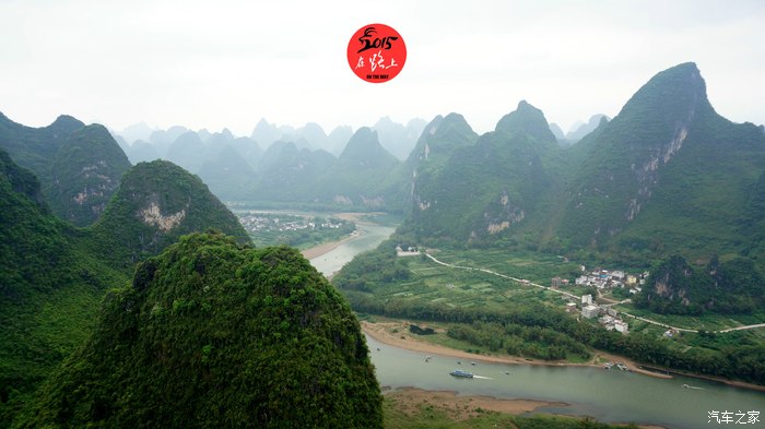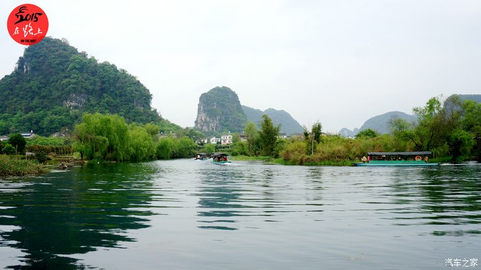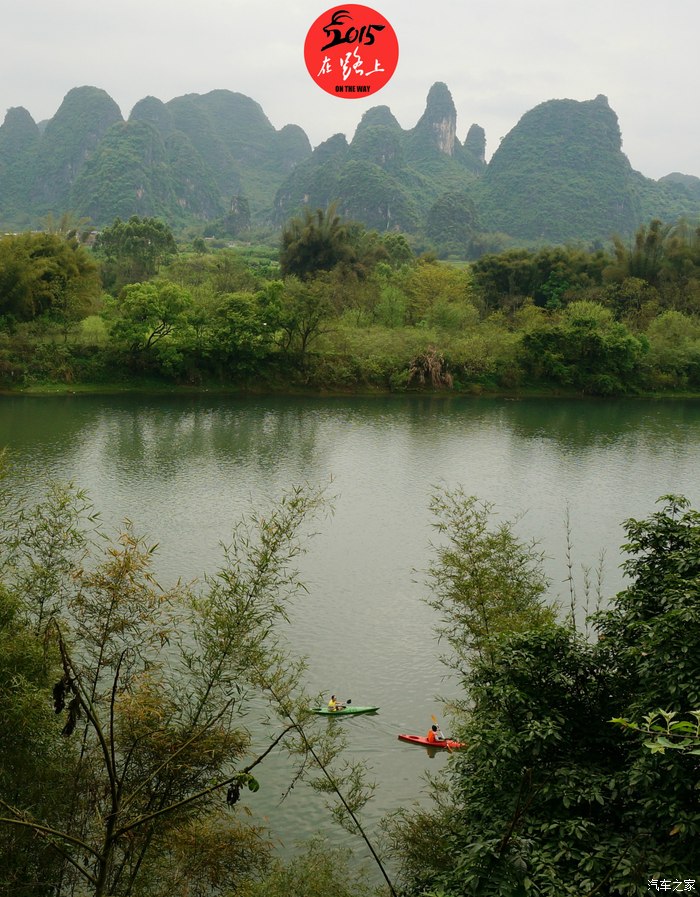7、站在庙上看风景,江上有两只橡皮艇,应该是从阳朔飘流下来的!这个玩法真不错!