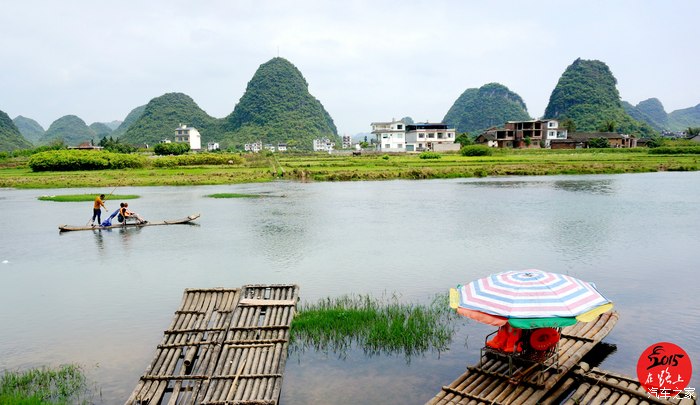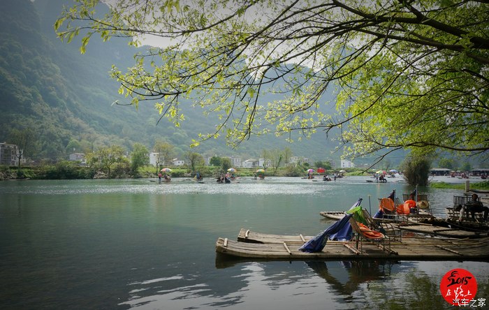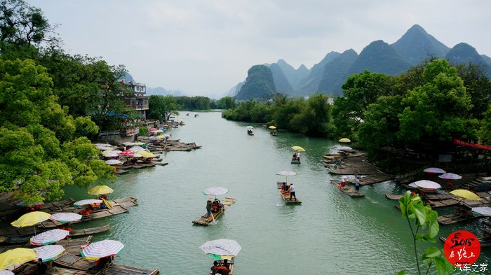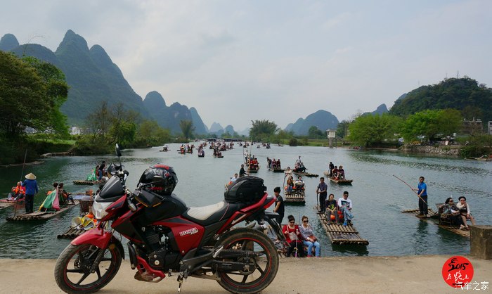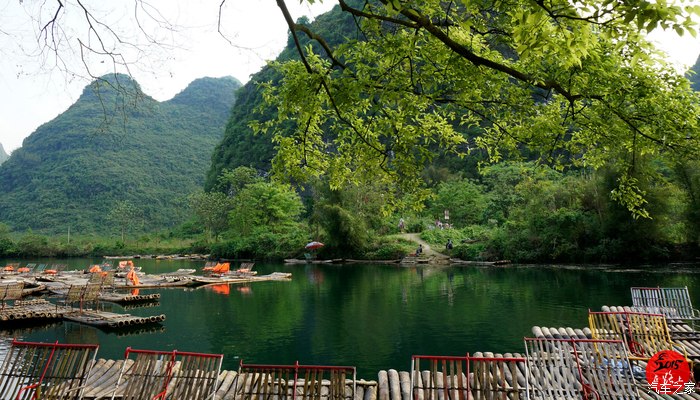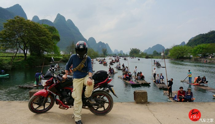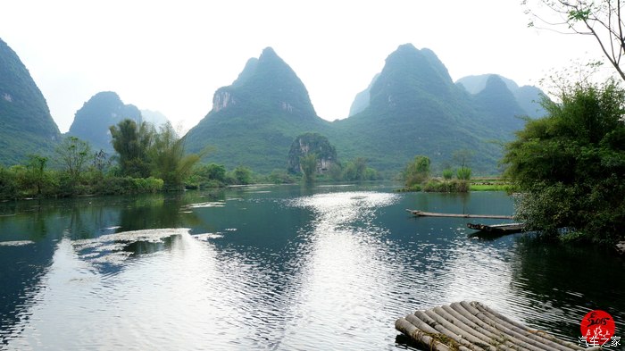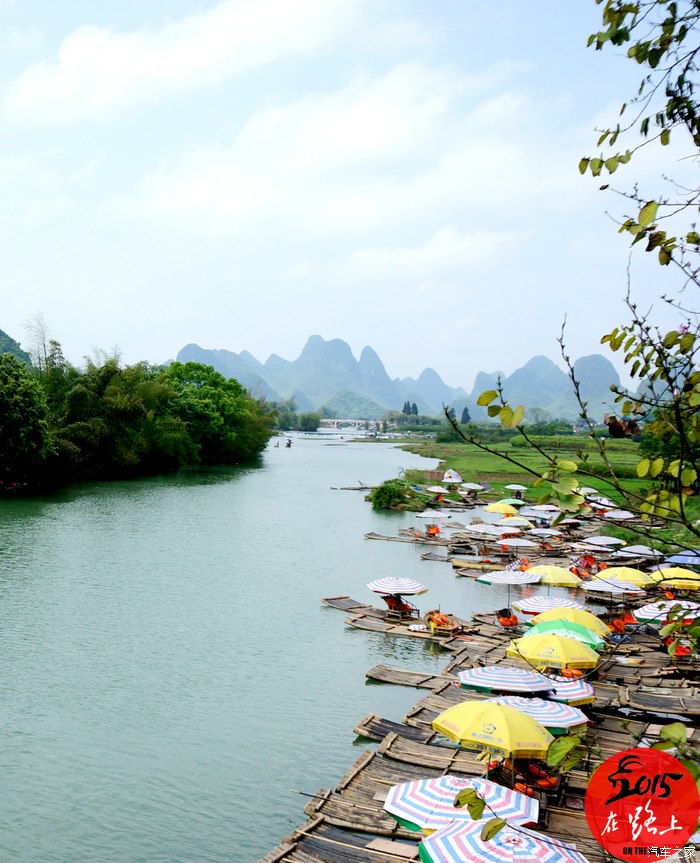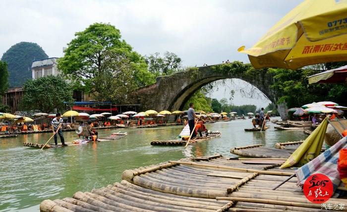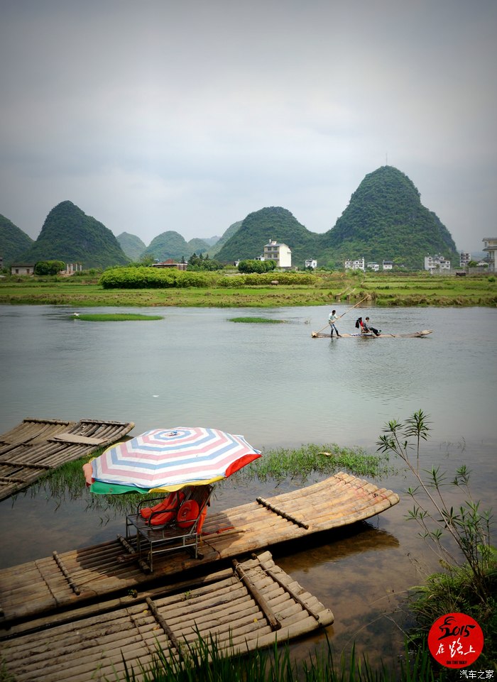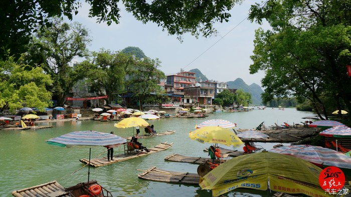 23、转眼就到了旧县,这里汇聚了从夏棠码头漂流下来的竹筏,一路延绵到阳朔大榕树景区。忽然想起一句名言:你站在桥上看风景,坐在竹筏上的人在看你。