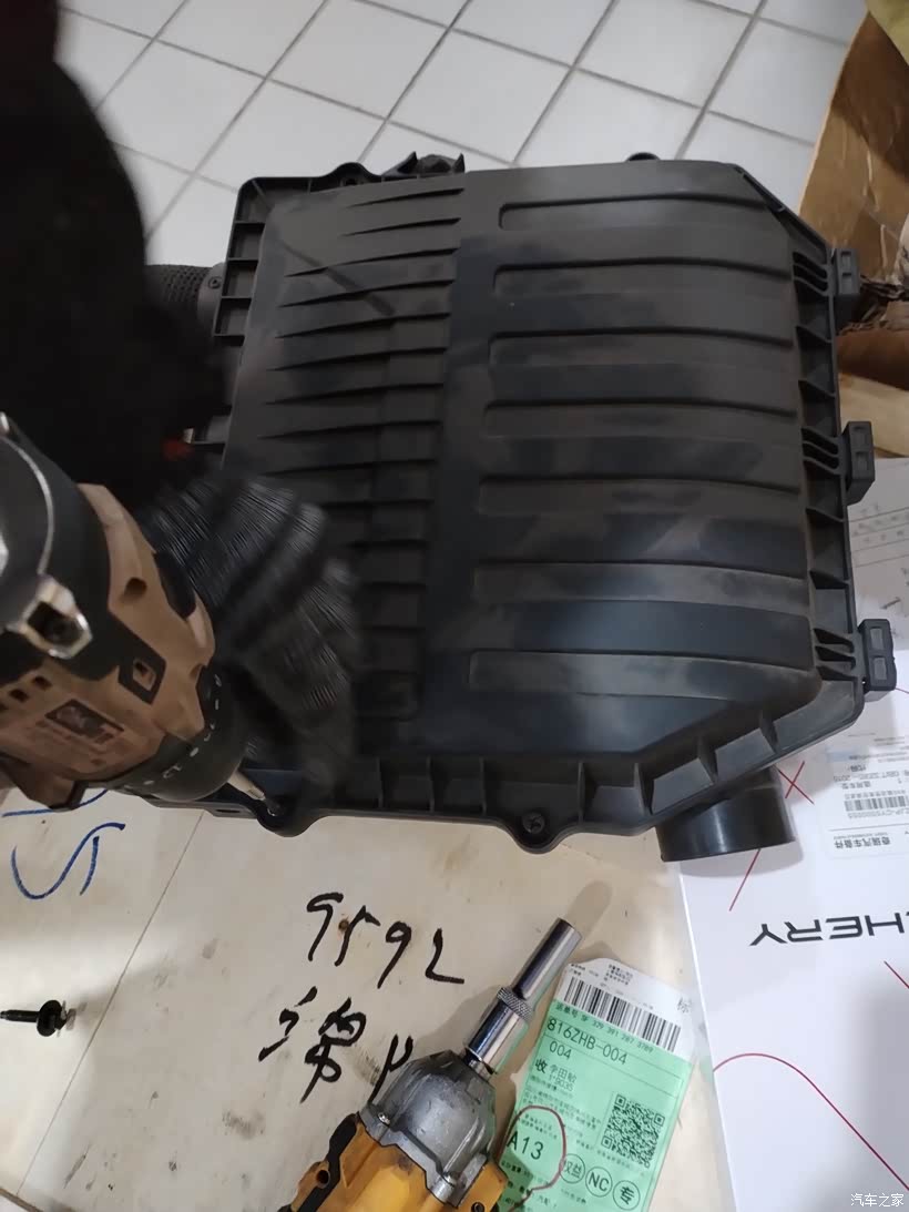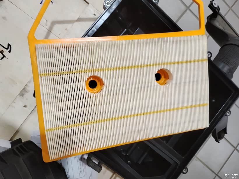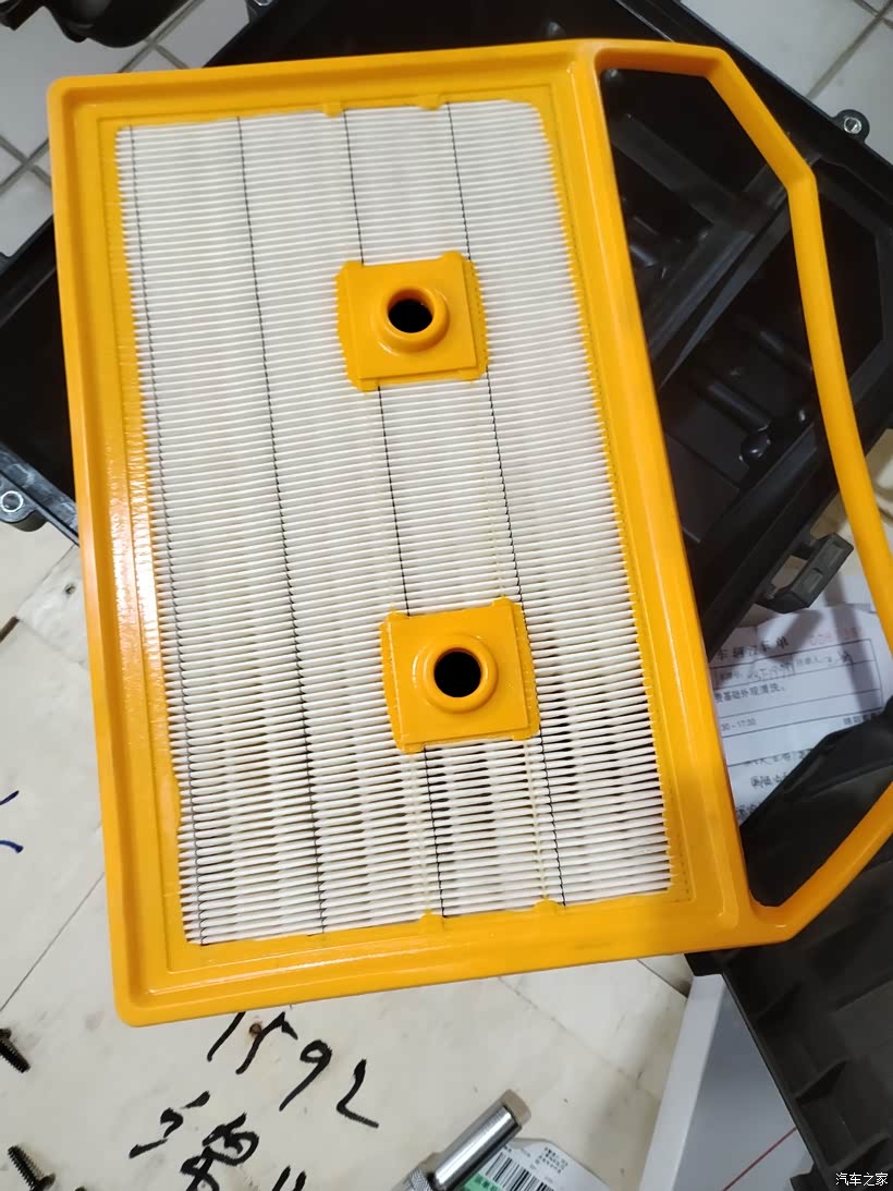 今天给我的风云T9更换空气滤芯,因为首保是没怎么使用,也就没有更换!打开发动机舱,找到位于引擎上方的黑色空气滤芯盒,先用工具拧下四周的固定螺丝,轻轻掀开盒盖,就能看到里面原厂的旧滤芯。