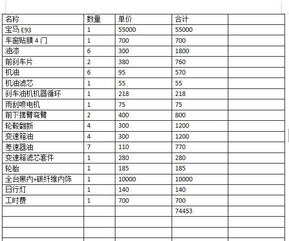 买来以后花了2万整备了下,车况还是OK的,发动机部分几乎没有花什么钱,主要是全车油漆、和内饰全车改色。我有整备清单,放在后面。