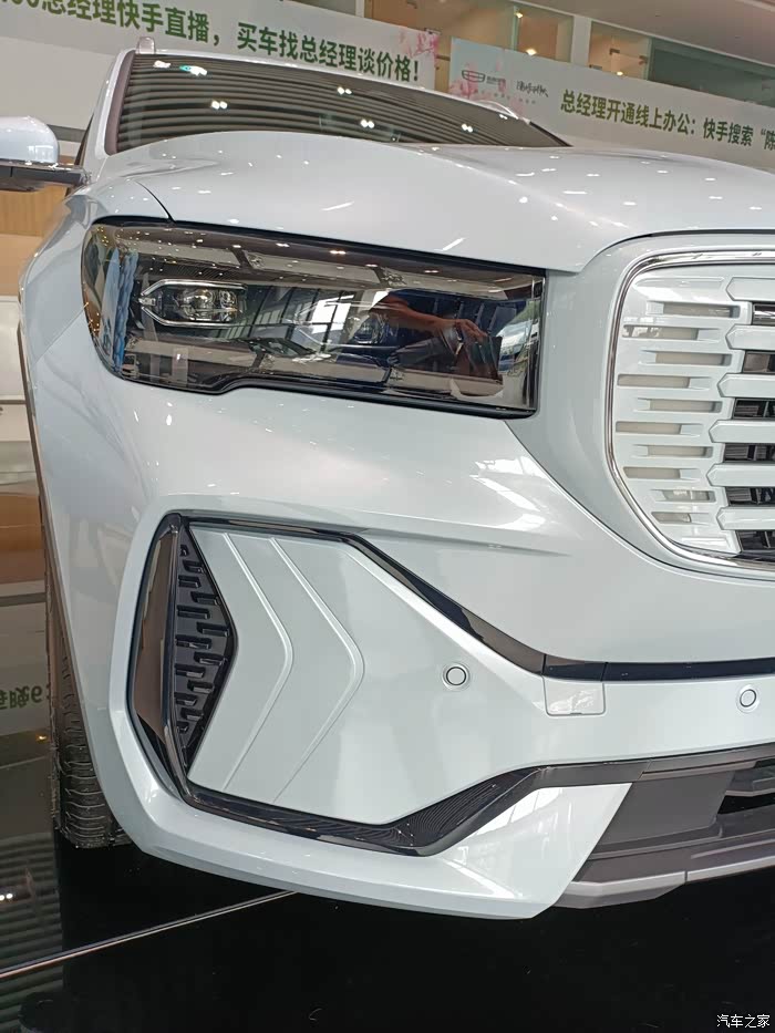 车辆前部保险杠采用全新的造型设计风格,将X元素很好的融入其中,彰显了它作为星越L雷神Hi·X车型品牌定位,矩阵式的LED灯组让它看着更加的明亮十足,夜晚实测照明性能也很不错。