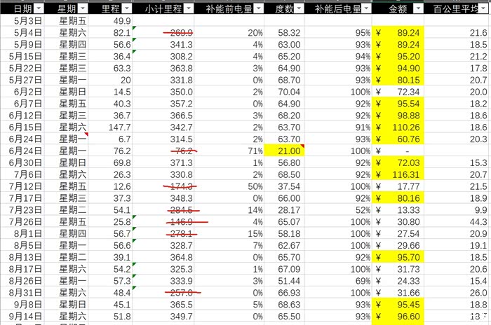 我还算了算平均续航340公里左右,差不多是表显打7折,平均百公里电耗接近19度了(可不低啊)!当然了,如果每天都高速路顶速跑,就不是这个续航里程了。冬天里程还会打折扣,等我过完这个冬天总结。