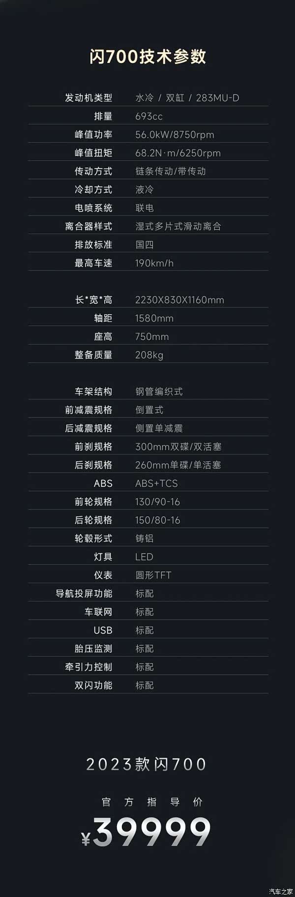 总的来说闪700在配置上中规中矩,而39,999元的售价也走了亲民路线,所以在配置上并未采用品牌件也情有可原。另外,从闪700的配置表看车友可以根据需求选择皮带和链条两种形式的传动。那么你觉得闪700如何呢?欢迎在评论区留言讨论。
