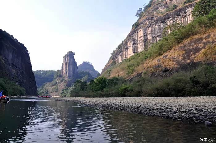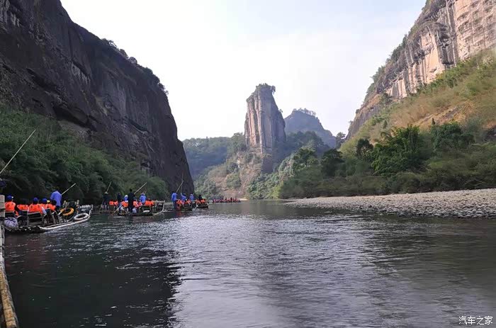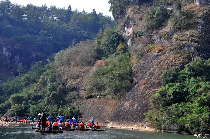 漂流结束了,在漂流的过程中观奇景、听趣事、赏风情,乐乎于心。中间有许多值得回味的人和事,还有那一路的人文历史,一路的欢声笑语,当然还有那艄公一路的笑话,段子……漂流的终点上岸就是宋街,由于我们昨天已游览过,就没有随人流进入宋街,直接旅游车调度站,乘车到下一个景点——大红袍。