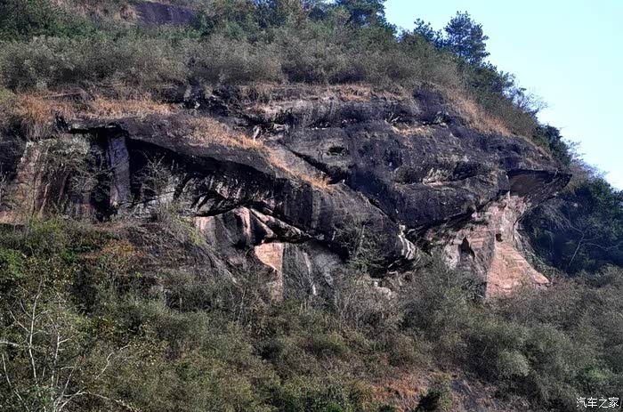 这个岩石叫泼墨岩,岩石上那黑色的印记真像国画的一种表现技法——泼墨。