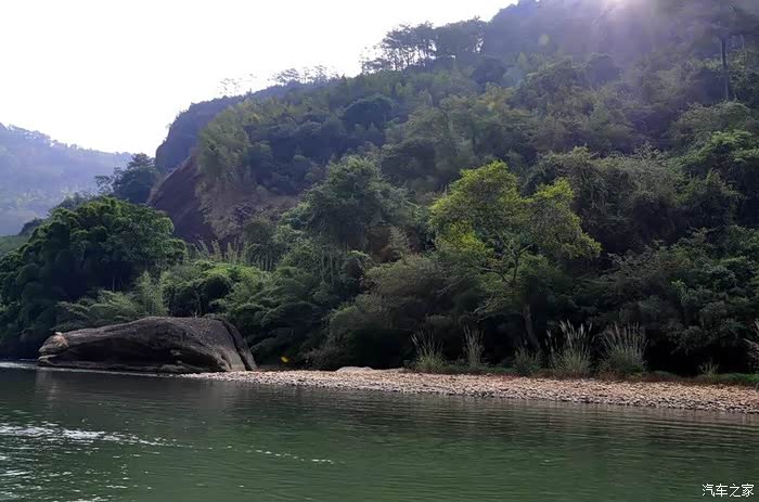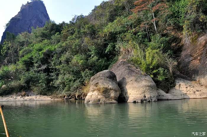 九曲溪从九曲到一曲顺流而下,这里已经到了尽头,可见岸上远处的大王峰。