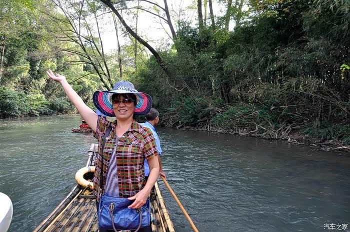 这里经营竹筏的也有妇女,就是相邻竹筏那位穿碎花衣的,不知她也是不是沿途讲解风景风情,也是不是诙谐幽默,在介绍趣闻趣事之中是不是也夹杂着荤段子。