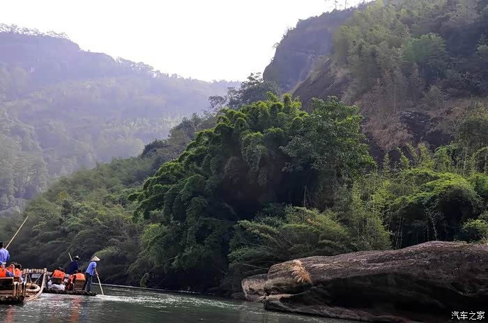 我们乘坐竹筏沿九曲溪顺流而下,湍流中浪击飞舟,深潭里凌波轻筏,一路水程逍遥浩荡。