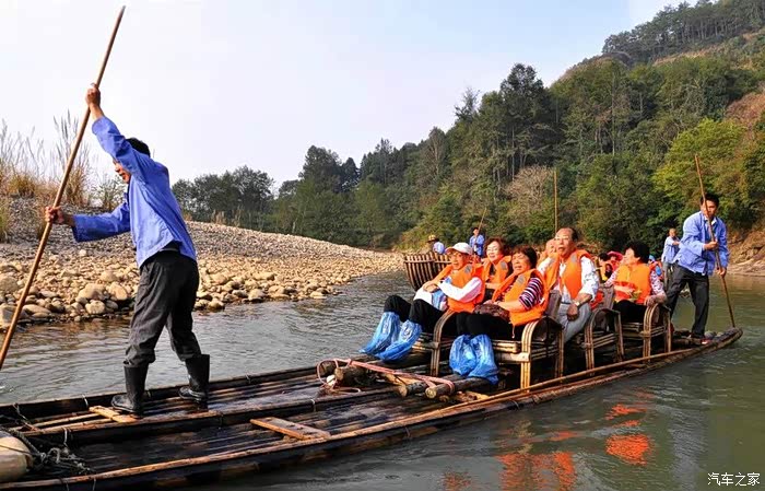 竹筏冲波击浪而下,不仅能领略到有惊无险的情趣,而且四面无遮无拦,抬头可见山景,俯首能赏水色,侧耳可听溪声,伸手能见清流。