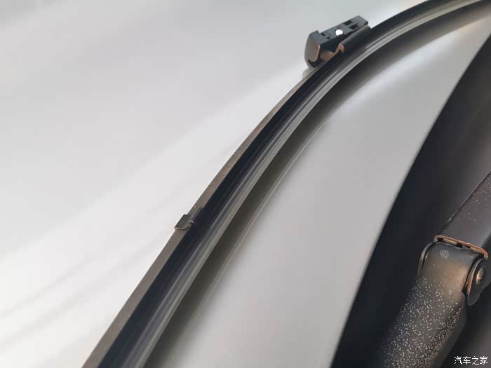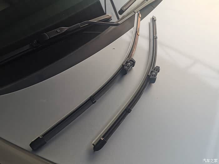 副驾驶位前方的雨刮条更换完成,注意两根雨刮条的长度是不一样的,副驾驶位的要短一点。