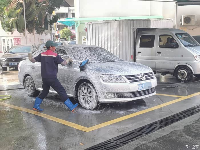 打蜡前要先将车子洗干净,附近的加油站加200元即可免费洗车一次,所以,去加油顺带着蹭了一下免费洗车。