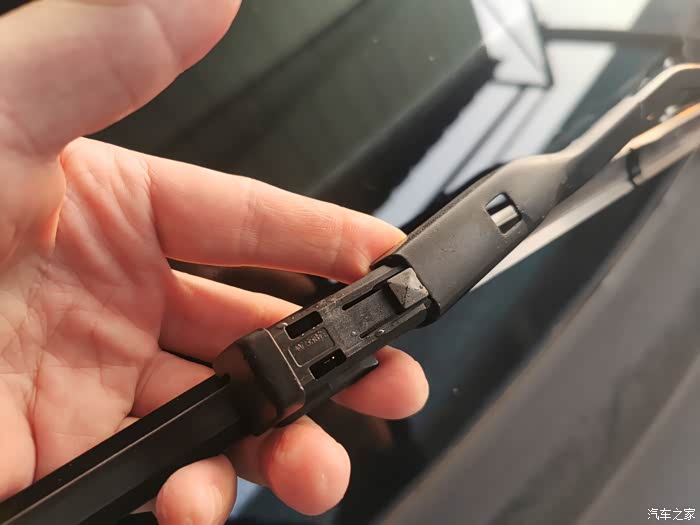 换雨刮会比较简单,按住雨刮上方形的按键,然后就可以拉出雨刮条。