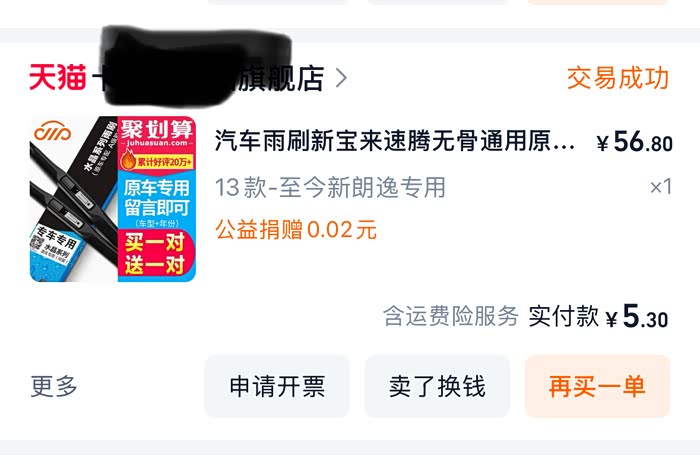 要换的这对雨刮,同样是网购来的,5块3一对,我一般都趁有活动价的时候买点便宜雨刮,一般用一年直接换。
