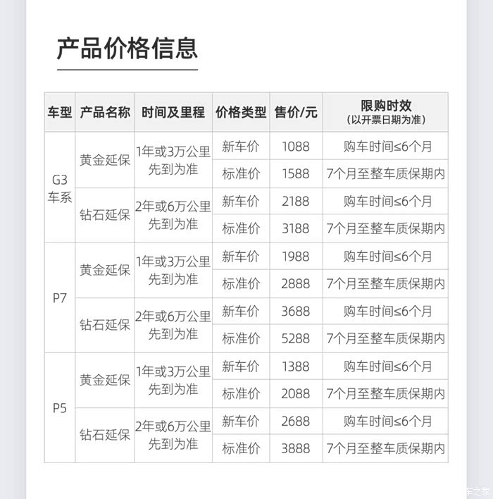 对于新鹏友来说,购车后一般都会得到一大笔积分,建议优先把这些积分用来购买车品相关的服务,其中我最为推荐的是优先购买整车延保服务,至于电池终生质保则要视情况而定,按目前小鹏官方的整车质保政策,P7是5年或12万公里,P5和G3I是4年或10万公里(以先到者为准);一般情况下一辆车的使用年限都在5年以上,智能车因为涉及的电子元件较多,如果过保后出现故障,维修的费用其实是很高的,所以购买整车延保是非常非常的有必要(推荐无脑购买2年或6万公里的钻石延保)