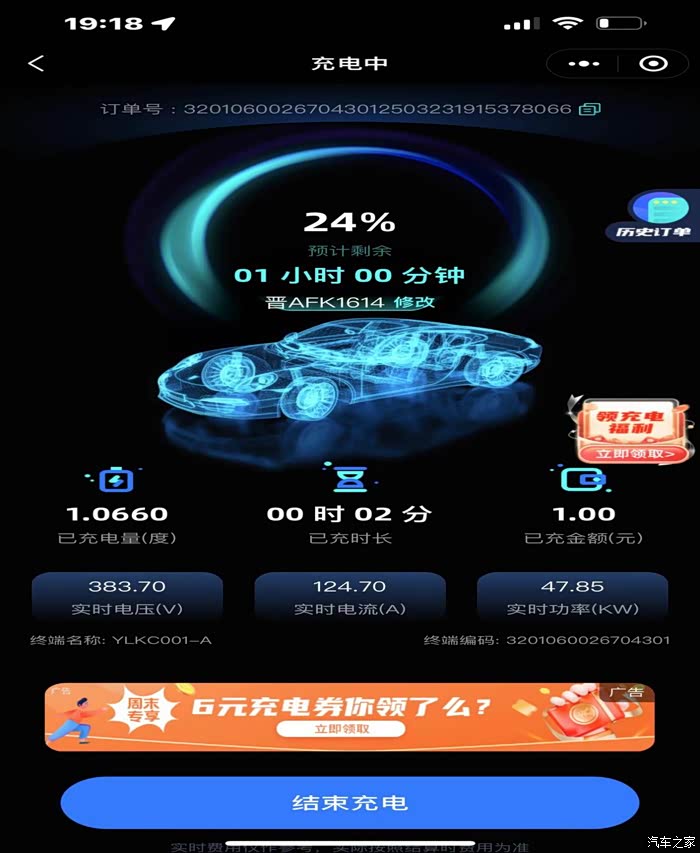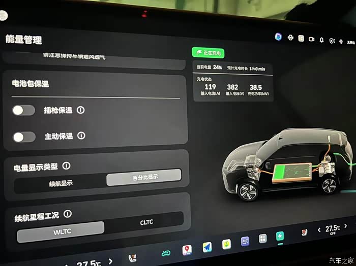 为了尽可能的让测试的数据真实,关闭了车里其他耗电的功能,把车开到充电车位上。