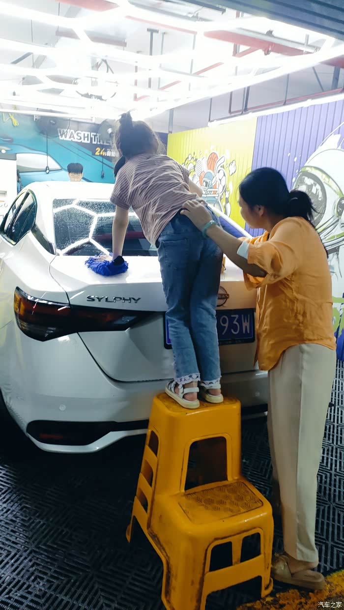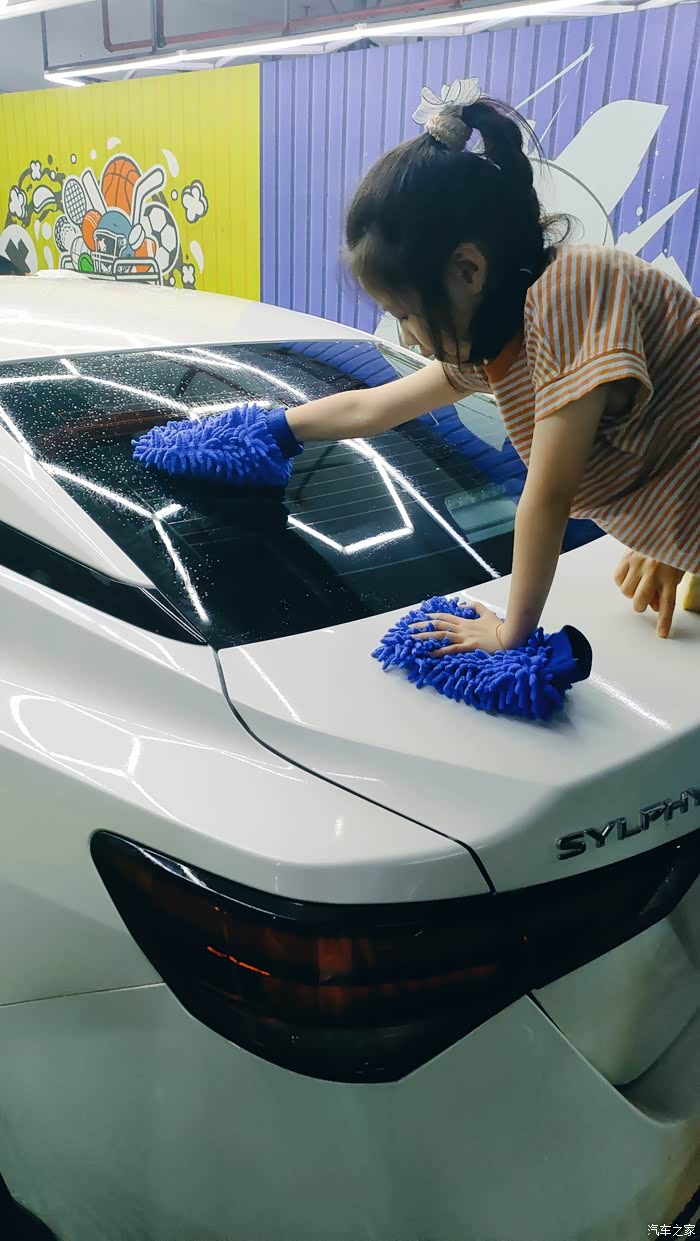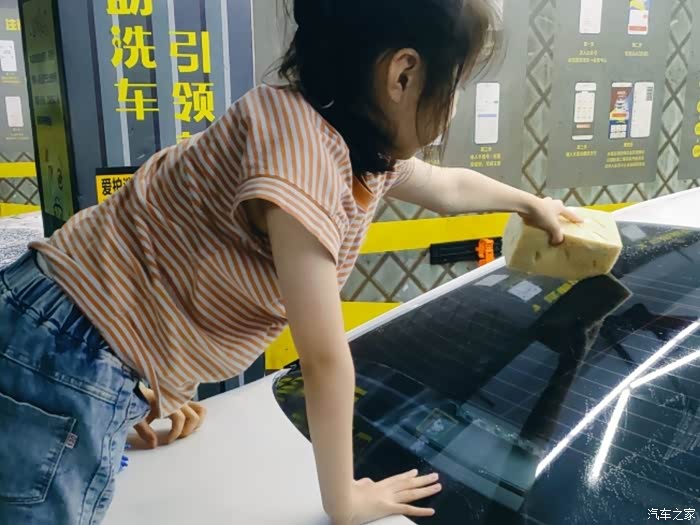 第三步:拿起洗车工具,洗车海绵、手套、拖把,分工合作,我们是一家人自驾游回来一起去洗的,每个人负责一个地方,就连我家7岁的小公主也加入进来,洗的还很卖力。车上脏,距离上一次简单洗车也有一个月了,更何况上次还没有洗干净,这次洗车有点吃力。