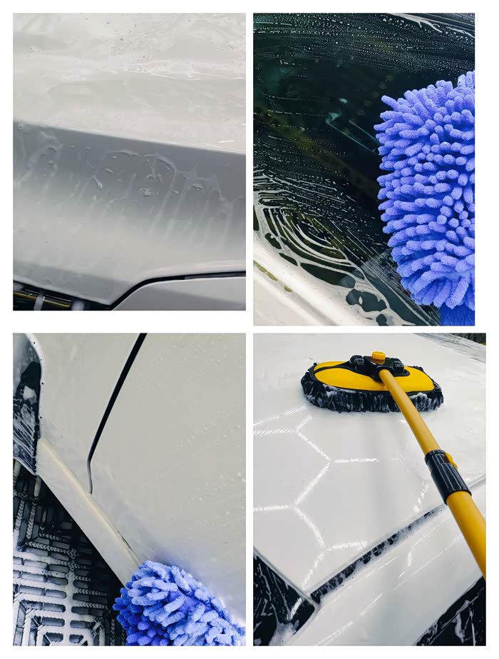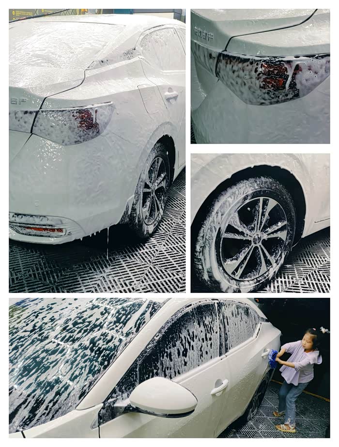 ①洗车的时候可以先喷泡沫,软化车上的砂石和灰尘,也可以先冲水,作用也是一样的。