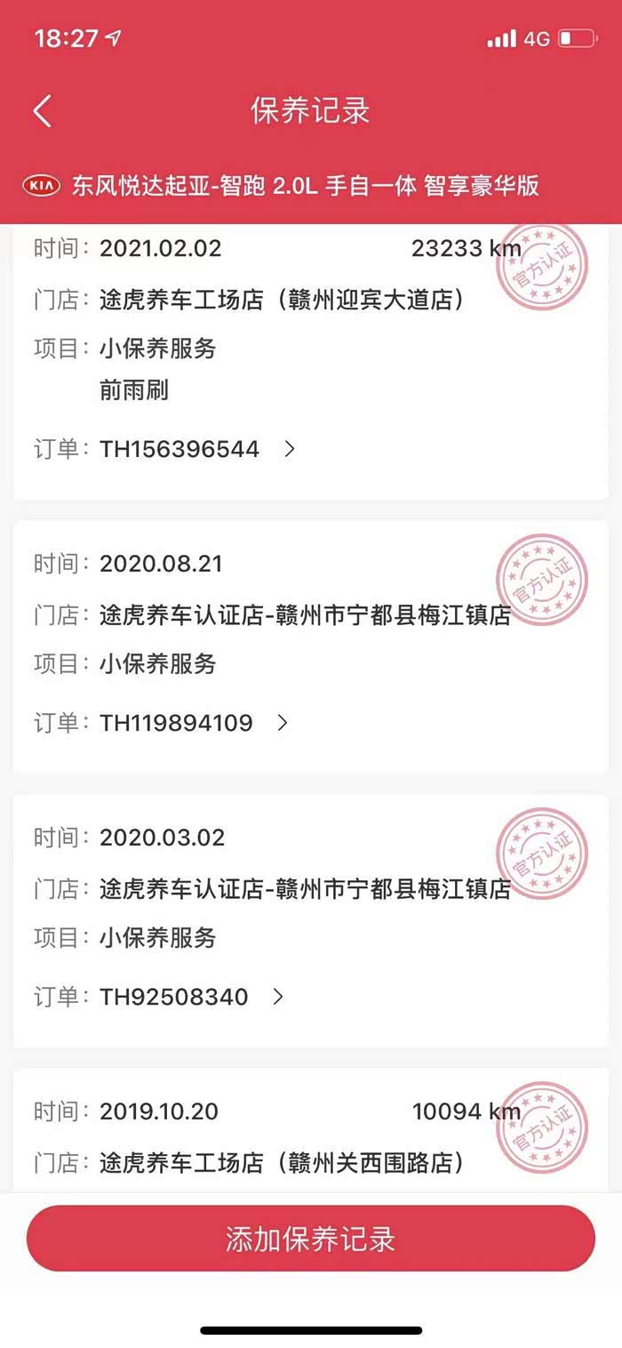 除了免费的首保在4S店做过之外,其它的二保、三保、四保、五保都在外面的途虎店里。