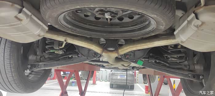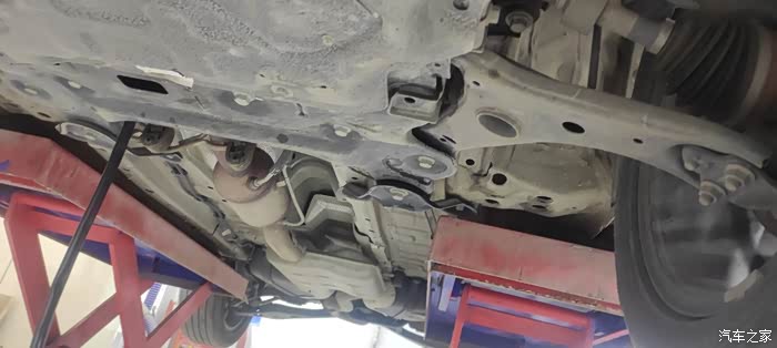 高速上的碎石、乡道的坑洼让我一路提心吊胆。升举机上的瑞虎8 Pro底盘暴露后,我重点检查了三点: