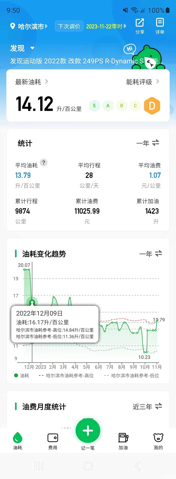 坐标哈尔滨,22年11月17日提车,整整好好1年的时间,跑了10027公里。
