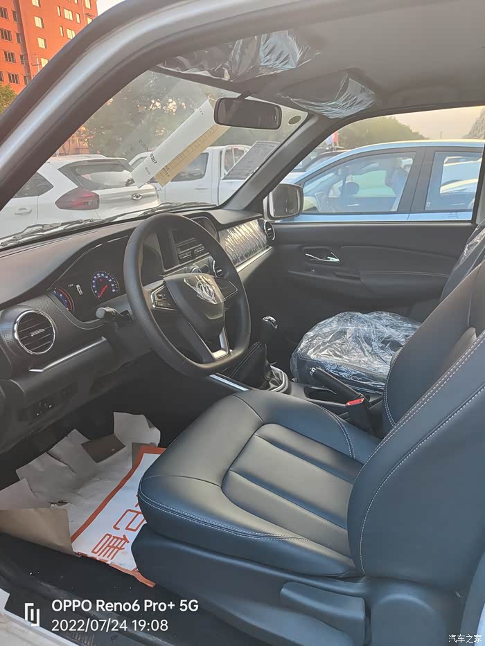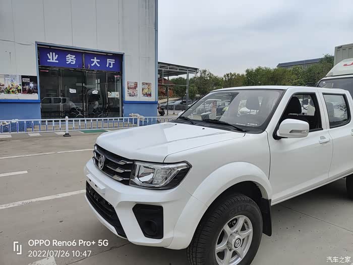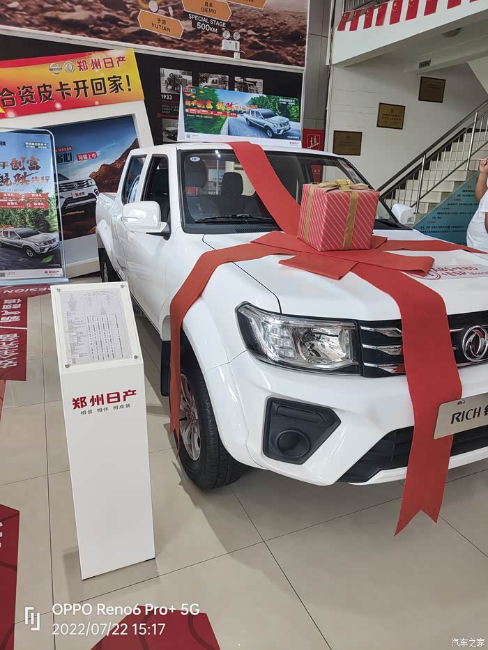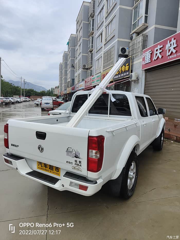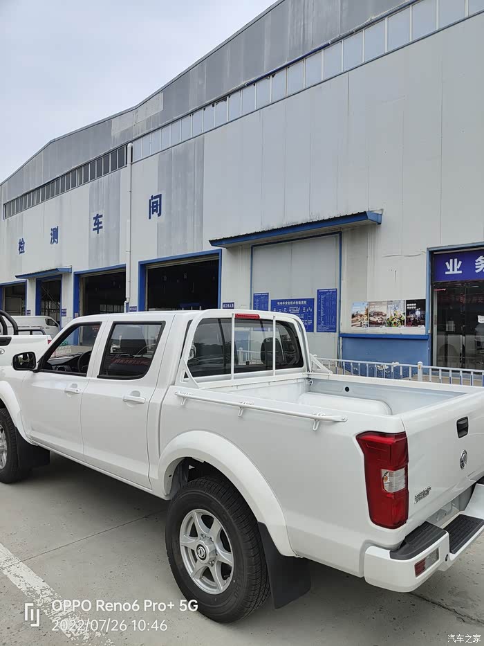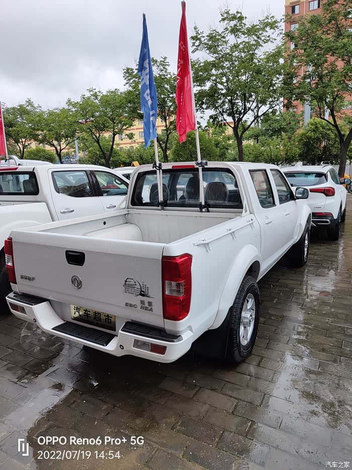 接下来就是看车,看了哈佛h6,长安cs75,传奇gs4,觉得这些车更适合家用,不适合做工具车。刚好我们当地6月15日起汽油皮卡可以进城,那就看皮卡车吧,符合坐人载货,底盘高动力强,没事了还可以轻度越野。符合条件、价格合适的就是风骏5和锐骐了。三大件都没有问题,风骏5销量好,外形圆润些,现车最短的5.4米,锐骐硬朗,又是郑州日产的现车最短的5.1米。考虑到当地皮卡政策,路边停车位大小,最终选择了锐骐汽油版两驱标箱版。