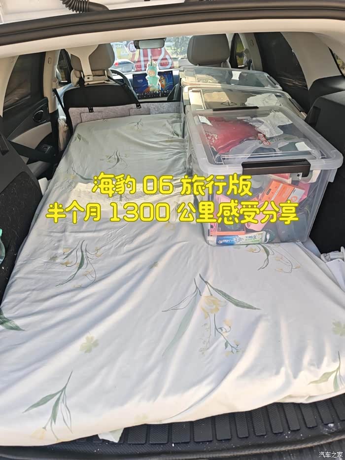 提车19天,开了近1300公里,感觉良好,继续跟大家分享一波首先是旅行版的性价比,我认为是13万以内无敌的,轿车开着坐着都比suv舒服,而豹旅又是轿车里空间最大的,后备箱跟suv差不多了,然后又可以放倒当床虽然有一点点坡度,但是加个乳胶床垫,基本就感受不到了,可以说:13万内+轿车+空间大+可以放平当床车,基本就只有豹旅这一个选择了而且功能还多,冰箱,座椅电动调节,通风加热等等豪华配置都有了,可能也就差个方向盘加热,座椅按摩,超大卡钳等更豪华功能了,但是13万以内,还要啥自行车呢