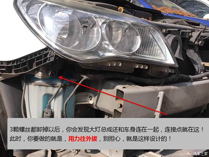 要解决这两个问题,最重要的一步,就是拆下大灯总成,这也是让很多人为难的一步,经过我的尝试,其实也不是那么复杂,看看我下面的步骤,我相信大家都能自己动手解决!废话不多说,上图更清楚