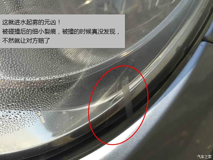 当然,导致大灯进水起雾的原因有很多,而我的应该是因为一次被倒车的速腾碰了一下,现场觉得没事情,就让它走了,其实那时大灯已经有了很细微的裂痕,影响了密封性,最终导致进水起雾。
