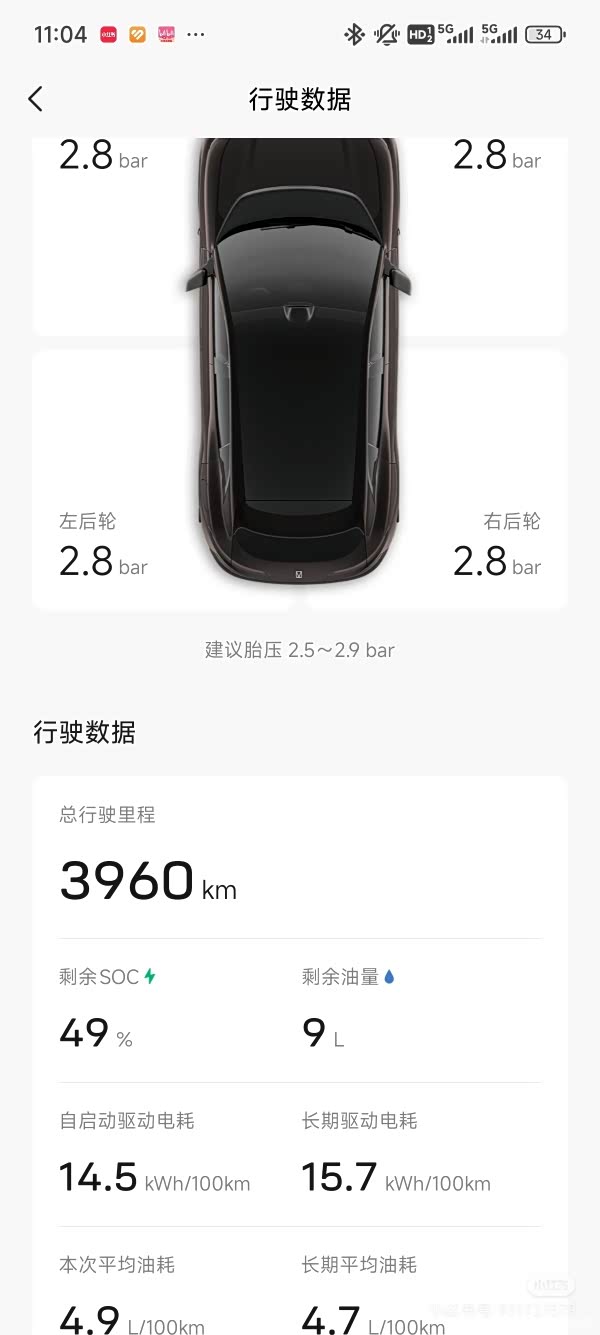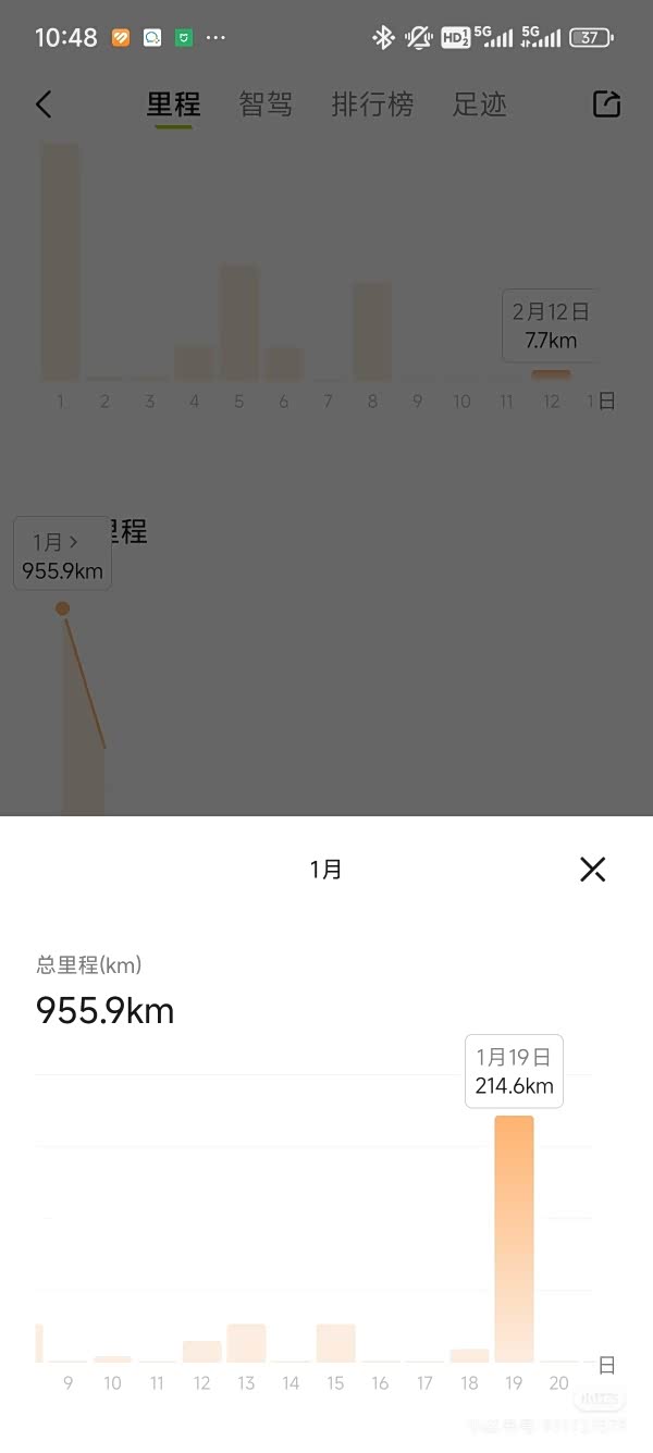 一直开的节能模式(动力响应会变慢,但是加速能力够用,动能回收较明显,油门控制得当不会有晕车感),胎压2.8,跑起来后2.9,加上在广东,属于对续航非常友好的工况了。实测轻松超出两百公里纯电续航,举个实际体验的栗子,1月19号跑了215公里,其中大概一百四十公里高速,按照限速提高不超过百分之二十并且不超过120时速智驾跑出来的,且开始结束在同一地点,两个人,纯电优先,99的电量出发,回到家增程器还没启动(具体纯电剩余里程忘了记录了)。