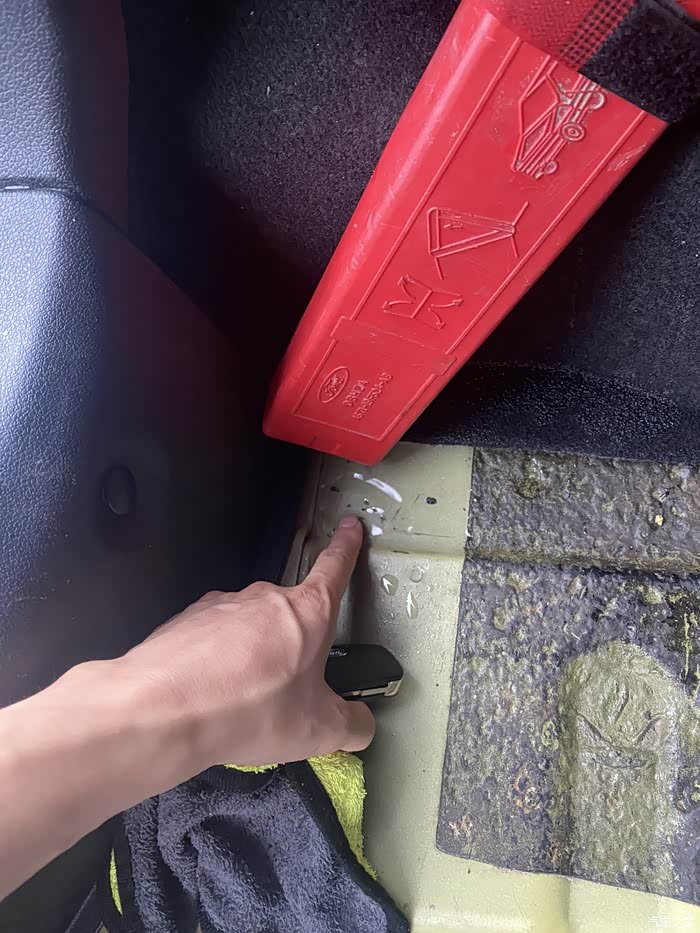 搞完之后,以为彻底解决了车子漏水问题。于是等到下雨之后再去检查了一下