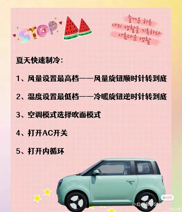 Tip:车内温度上升后,将风量和温度调至中间档位即可,又省电又暖和