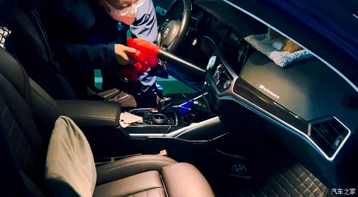 前后左右全吹一遍,然后开始收拾残局,把吹出来的脏东西再吸走,还车里一片净土