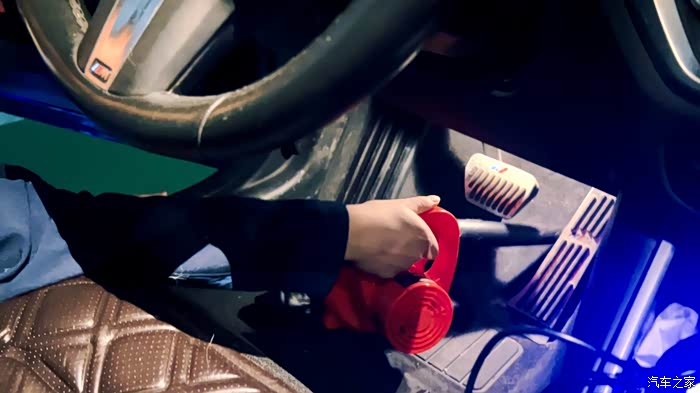 像刹车踏板这种地方平时都是卫生死角,光靠吸尘器是不够的,这次先铆足劲狂吹Y的